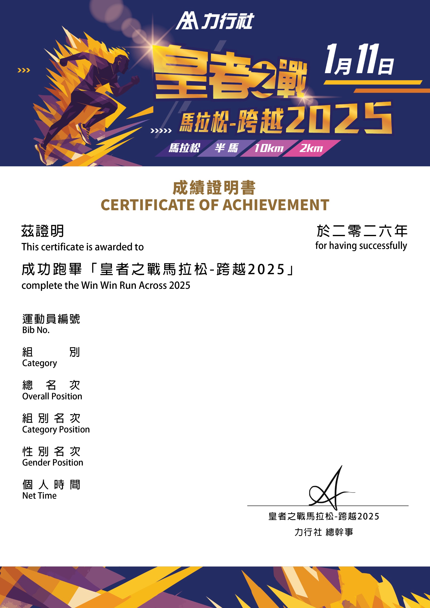 Event Completion Certificate is available. HK$100 will be charged for each Event Completion Certificate to cover administration costs and postage. Participants can also download the e-certificate free of charge.